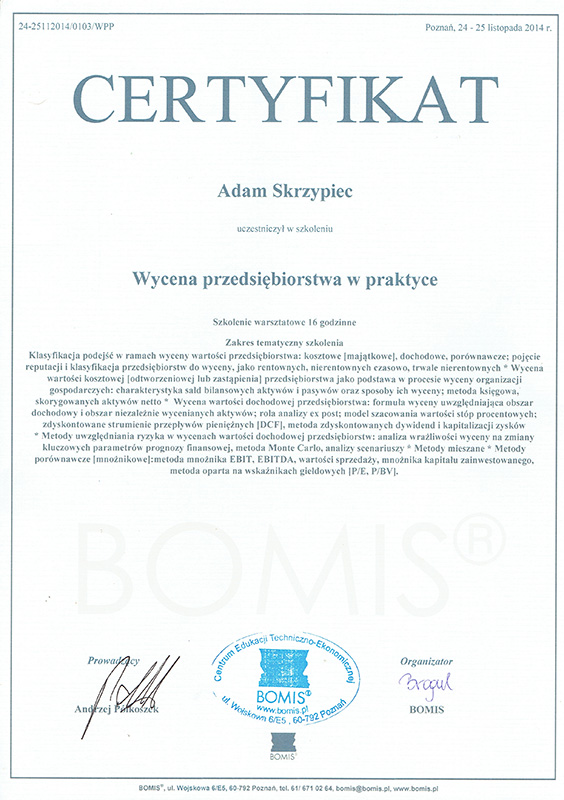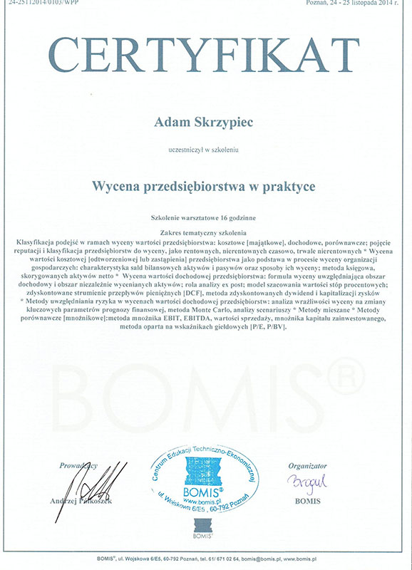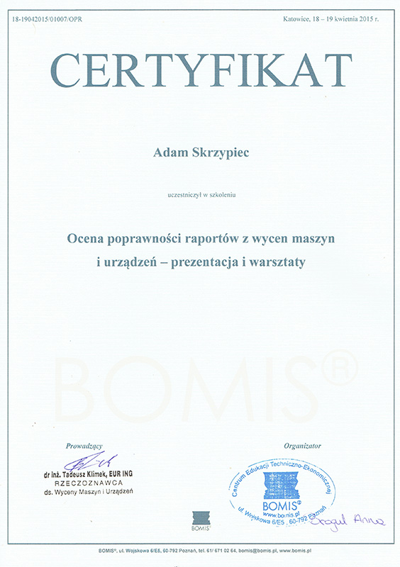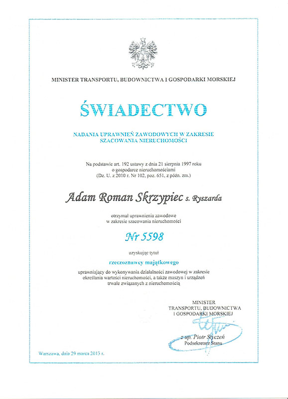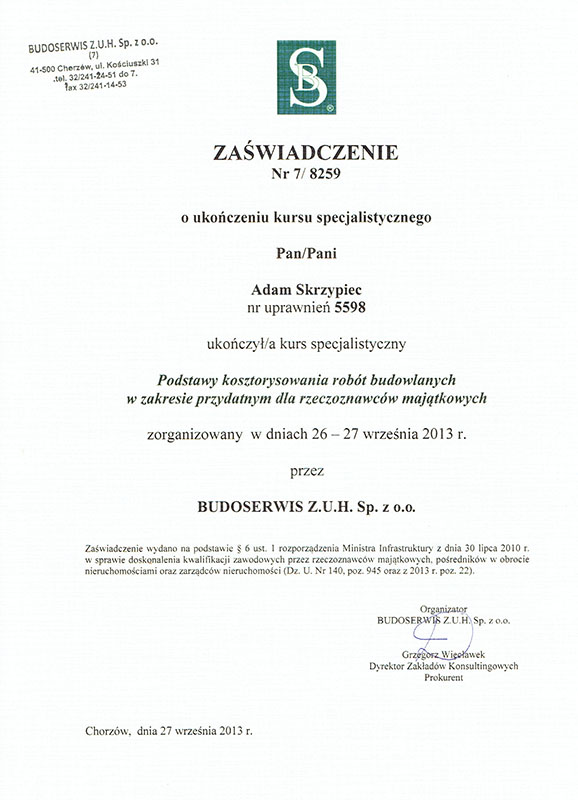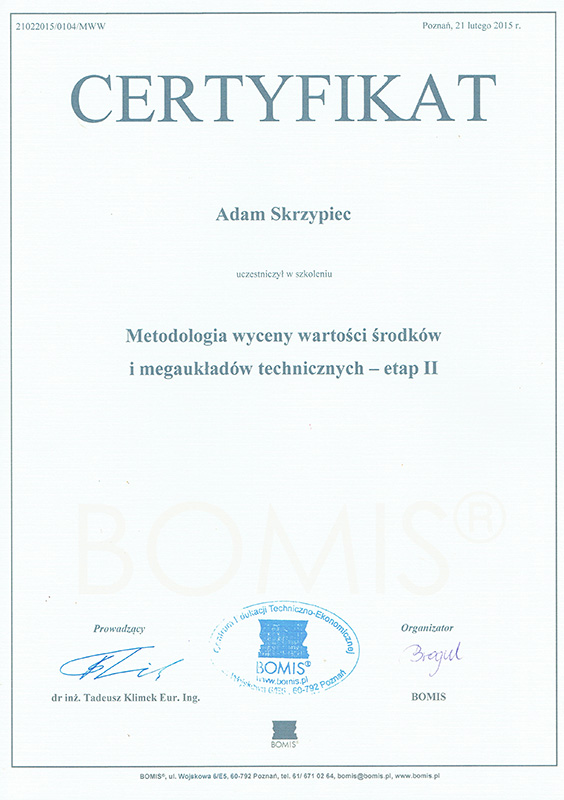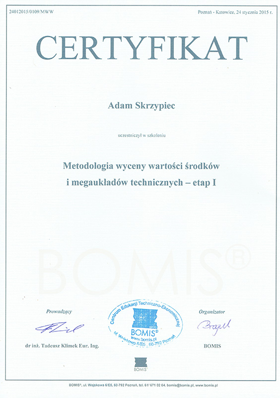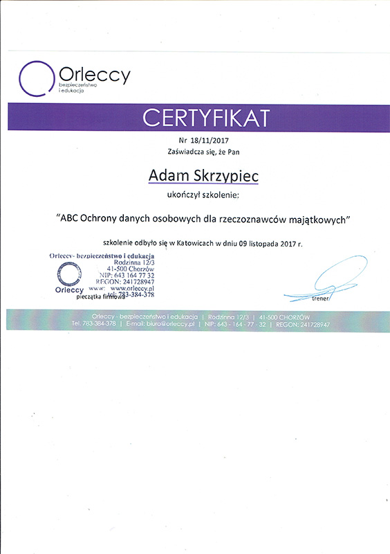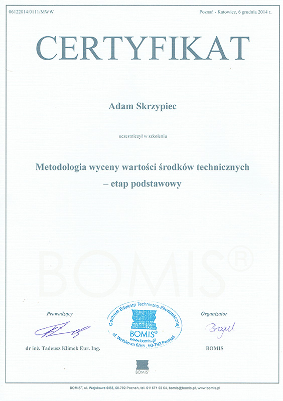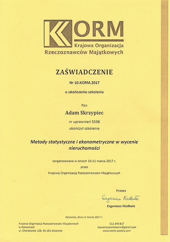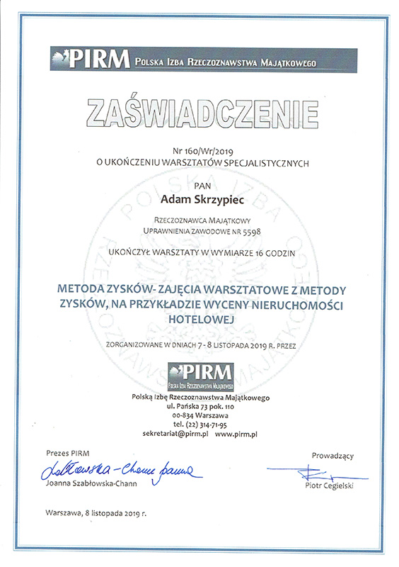 Wyceny nieruchomości opracowywane są zgodnie z obowiązującymi przepisami prawa oraz ze standardami zawodowymi Polskiej Federacji Stowarzyszeń Rzeczoznawców Majątkowych (PKZW), a także ze standardami międzynarodowymi (IVSC, TEGoVA).